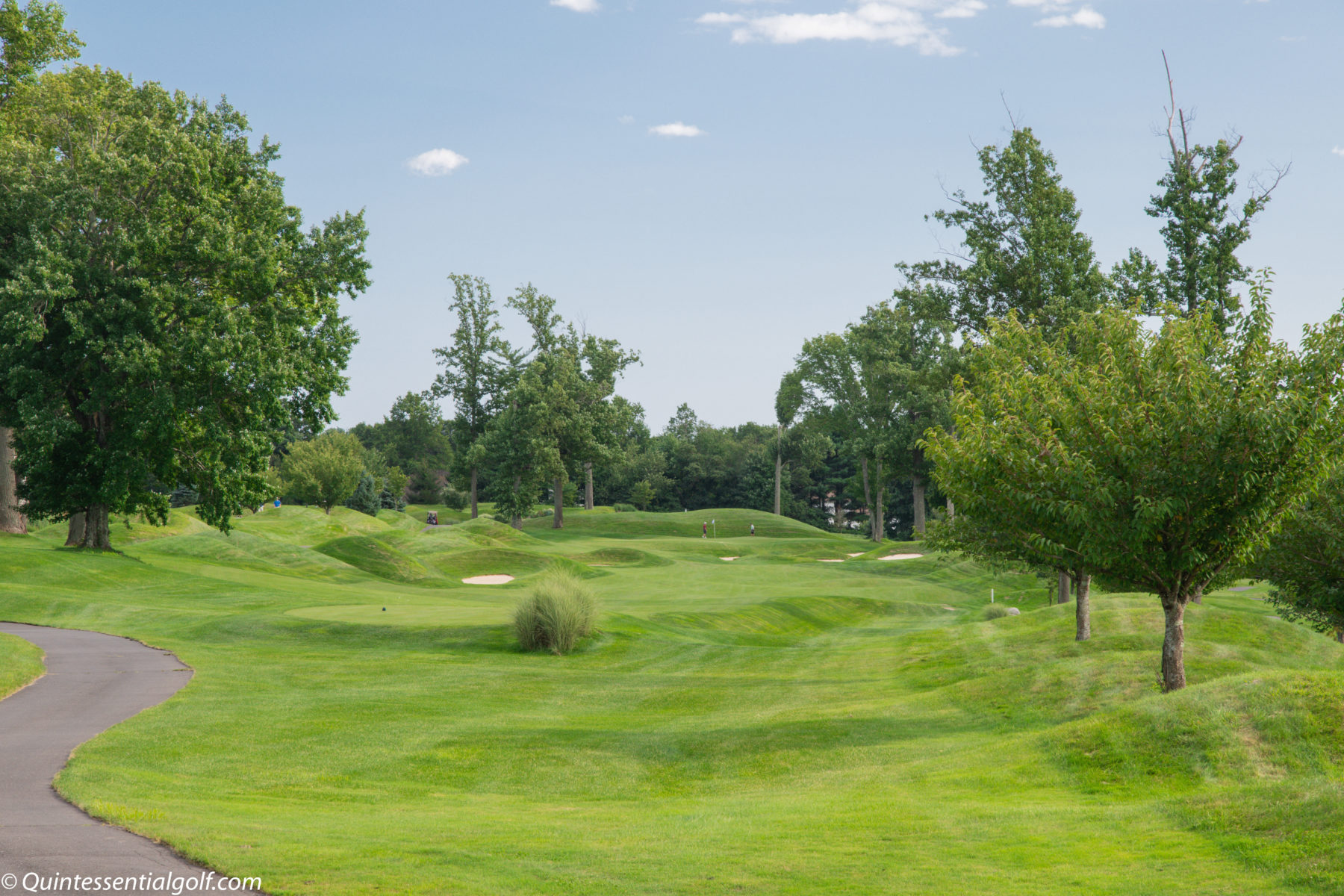 Grassy mounds also surround many of the greens. Recovery shots for offline approaches can require a deft touch out of the thick sloping grass.