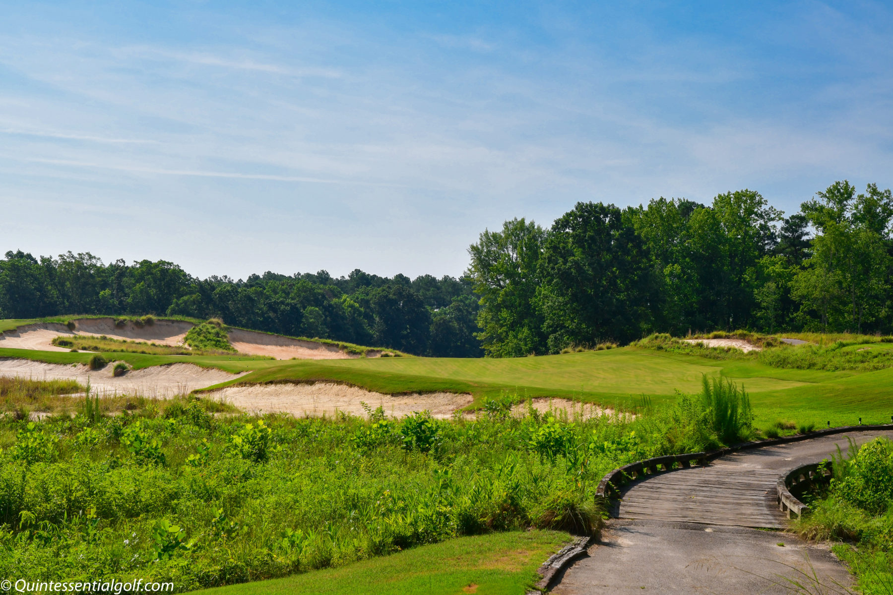 Mike Strantz built this place out of a tobacco farm and an old sand quarry. You can still see the bones—big sand ridges, wide cuts, love grass on the banks—but it’s all kept neat. Most of that sand is “waste,” not a formal bunker, so you can ground the club and take a practice swing. It looks wild and plays fair if you pick good lines and keep the swing compact.